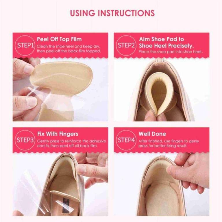 Sticky Design: Heel Pads have strong sticky backing that keeps them in place firmly. You can remove the adhesive backing and place the pads in the inside heel of shoes. Fixed for a while.