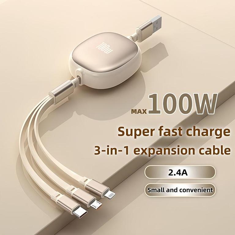 3-In-1 Data Cable,100W Fast Charging Charger Cable,USB To Type-C/Micro/Lightning Fast Charging Charger Cable,Retractable Automatic Rope, Multi-Function Data Cable Winder,Compatible With Iphone ,Charging Cable Compatible With Iphone 16/16 Pro/15/15pro/14/13/12/11/ S24/S23/S22/S21, Universal Efficient Charging Adapter Compatible With IPhone, Android, Camera, MP3 Universal Adapter