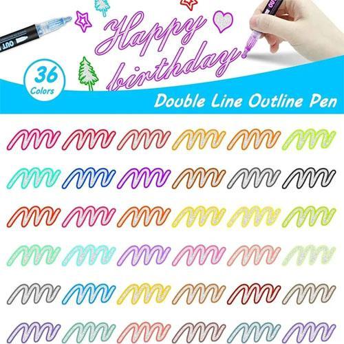 12 Color Double Line Outline Art Marker Pen for DIY, Graffiti, Scrapbooking, Bullet Journaling, and Poster Making in Pakistan
