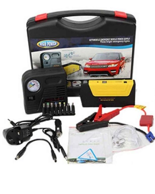 This Portable Starter Battery Booster serves as a reliable car jump starter and power bank. Equipped with essential emergency tools, it’s perfect for on-the-go power needs.