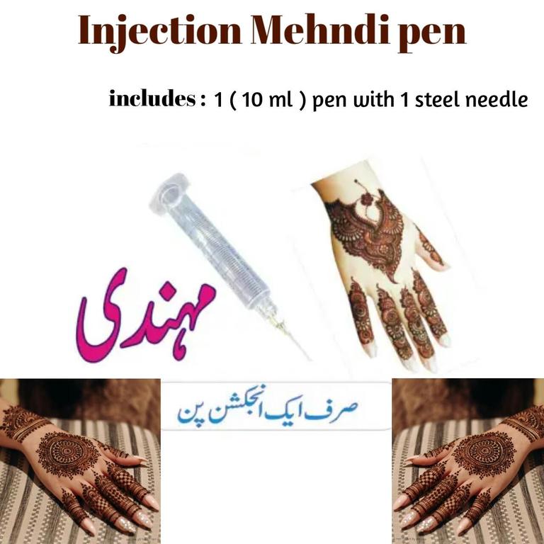 18 No Injection Mehndi Pen | Includes 1 Pen with 1 Needle (10ml)