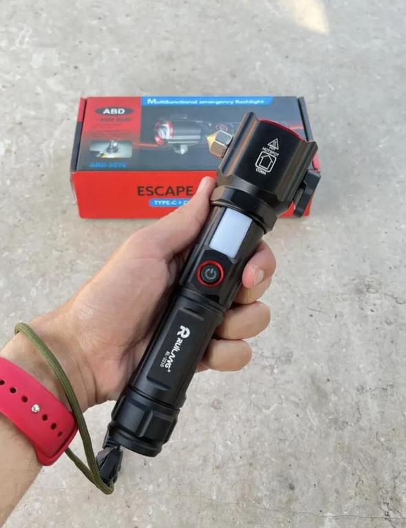 This flashlight is perfect for outdoor activities such as camping and fishing, providing essential lighting and safety functionality.
