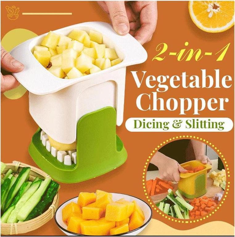 Streamline your food preparation with this 2-in-1 Manual Vegetable Chopper and Slicer. This innovative kitchen tool simplifies the process of chopping, dicing, slitting, and slicing with a few easy presses, making meal prep quick and efficient.
