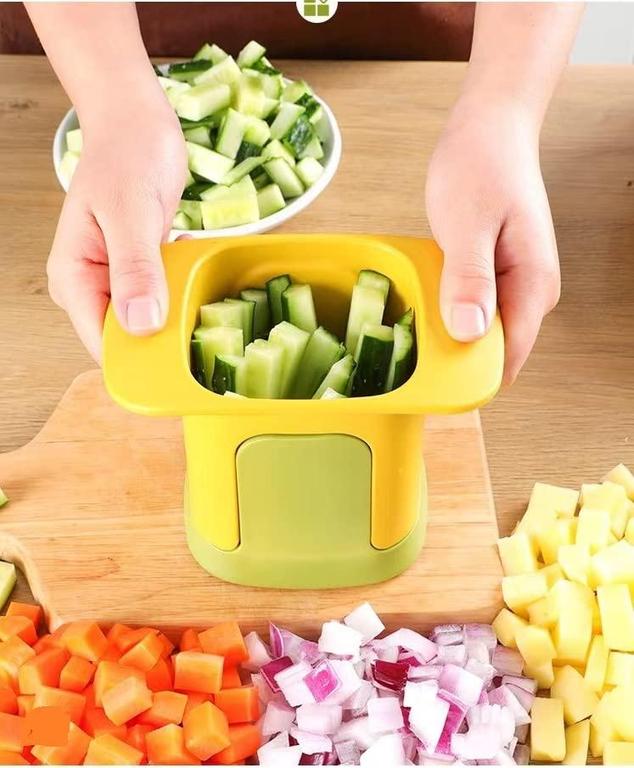 The chopper is equipped with sharp stainless steel blades and a robust press-down handle to provide smooth cutting without the need for electricity. Whether you're working with onions, carrots, cucumbers, or fruits, it ensures consistent results every time.