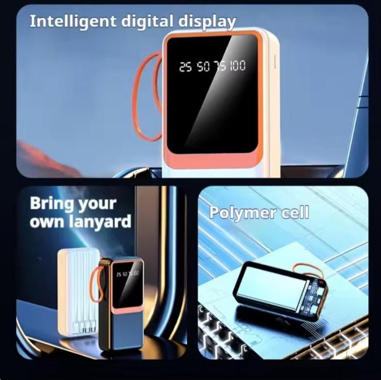 20000 mah Powerbank Fast Charger Digital Display with Built in 4 Charging cables | Compatibile with all Mobiles