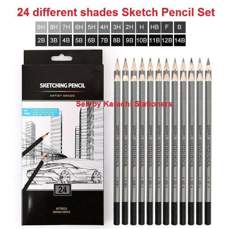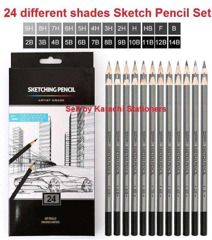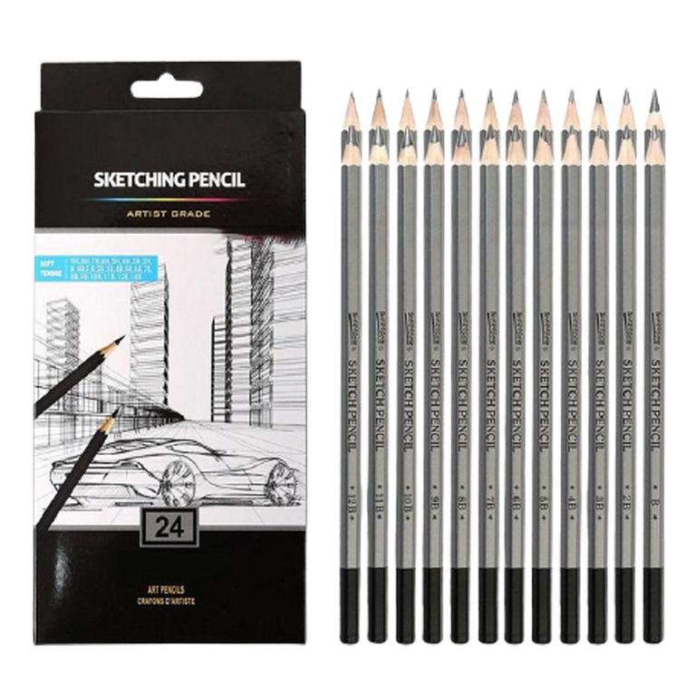 24Pcs Worison Sketching Pencil Set Includes 9H, 8H, 7H, 6H, 5H, 4H, 3H, 2H, H, F, HB, B, 2B, 3B, 4B, 5B, 6B, 7B, 8B, 9B, 10B, 11B, 12B, 14B Professional Sketch Art Pencils Drawing Sketches Pencils