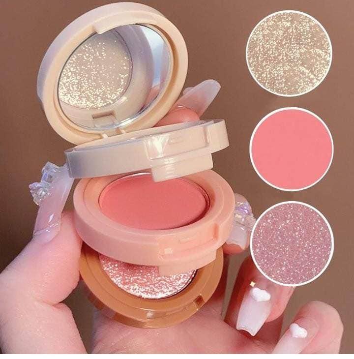 3-in-1 Blusher and Highlighter Palette for Professional Eye and Cheek Makeup