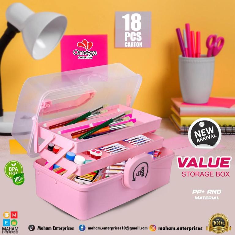 3 Layer Multi Purpose Storage Box – Lockable Cosmetic & Medicine Organizer – High Quality Plastic Storage Box with Handle – Mix Colours Available