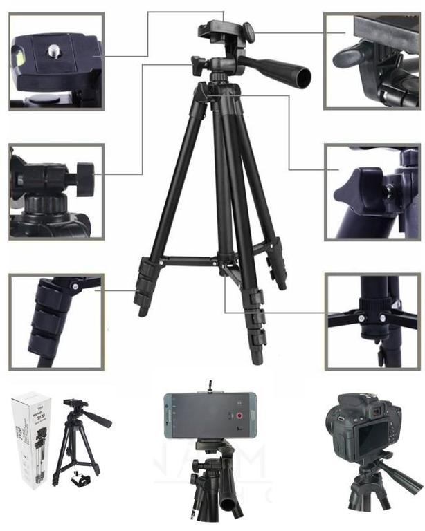 - Adjustable legs with a standard thread diameter allow for stability, while the three-dimensional head enables 360-degree rotation and 90-degree side shots.