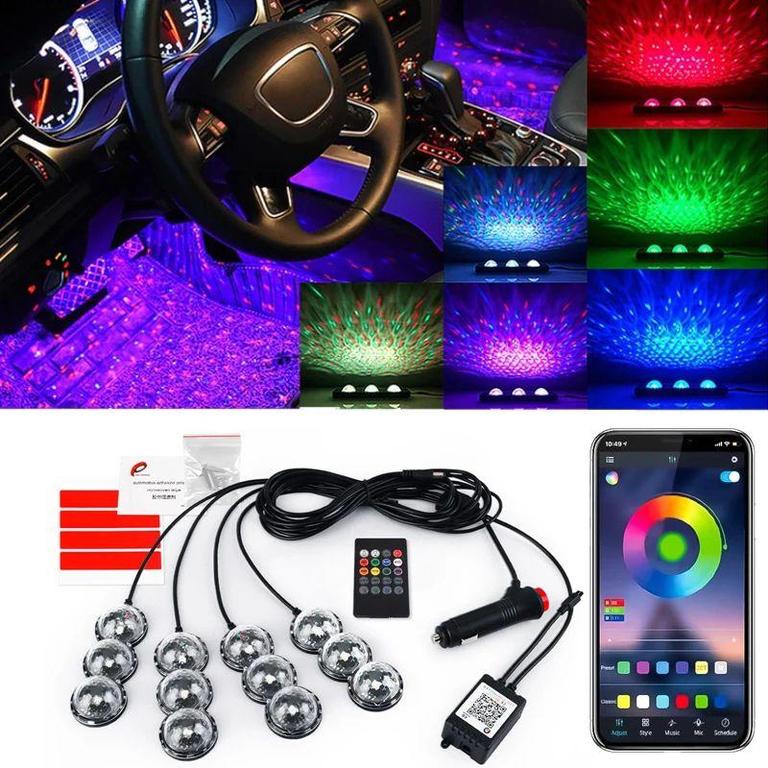 4-in-1 Bluetooth Car LED Foot Light with Remote Control and Sound Activation for Cars, Jeeps, and Bikes