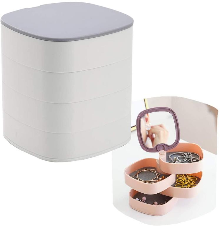 The rotating jewelry storage box features a mirror and is compact yet offers significant storage space, perfect for enhancing your style at any moment.