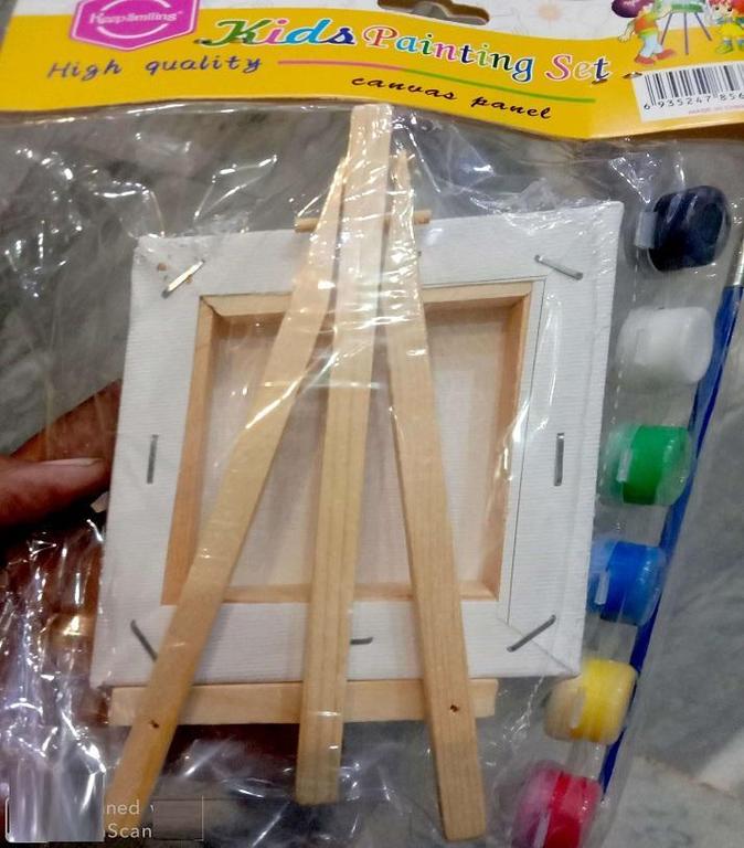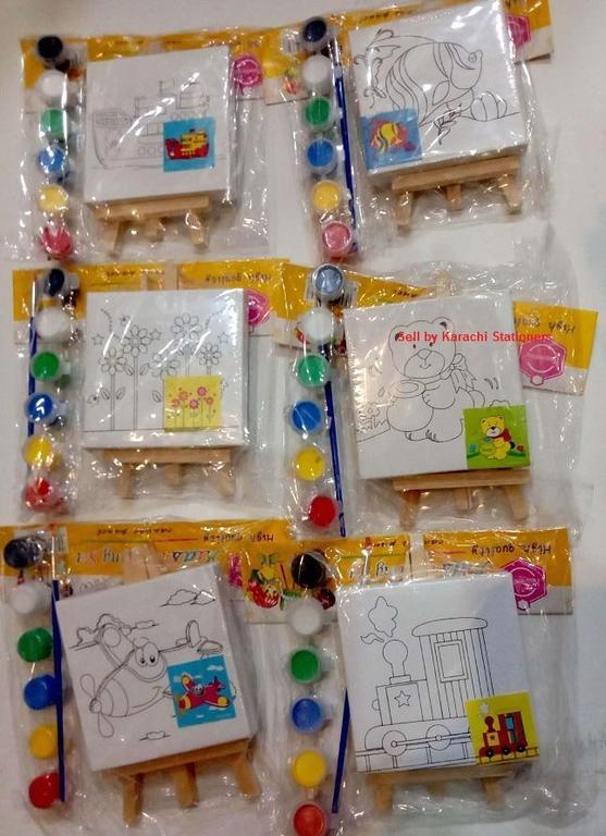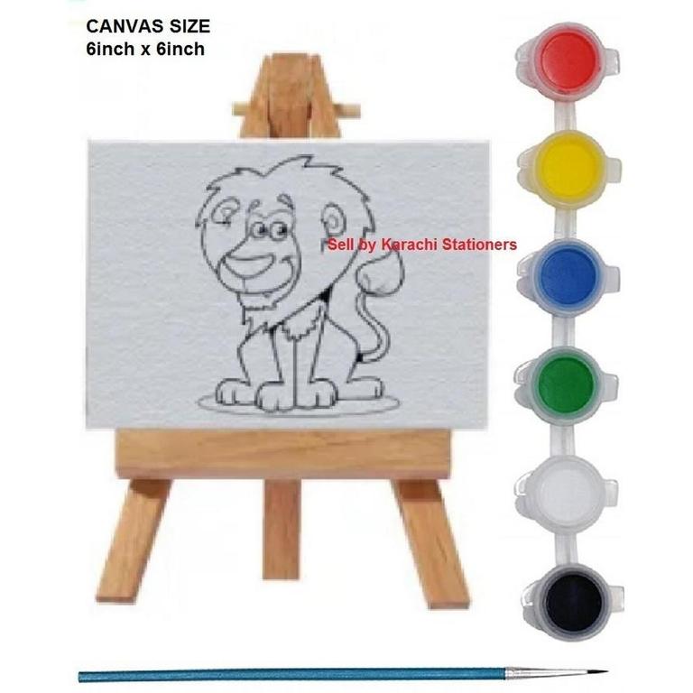 4in x 4in Different Printed outline Designs Canvas board with wooden stand easel and Acrylic Colours and a Paint Brush