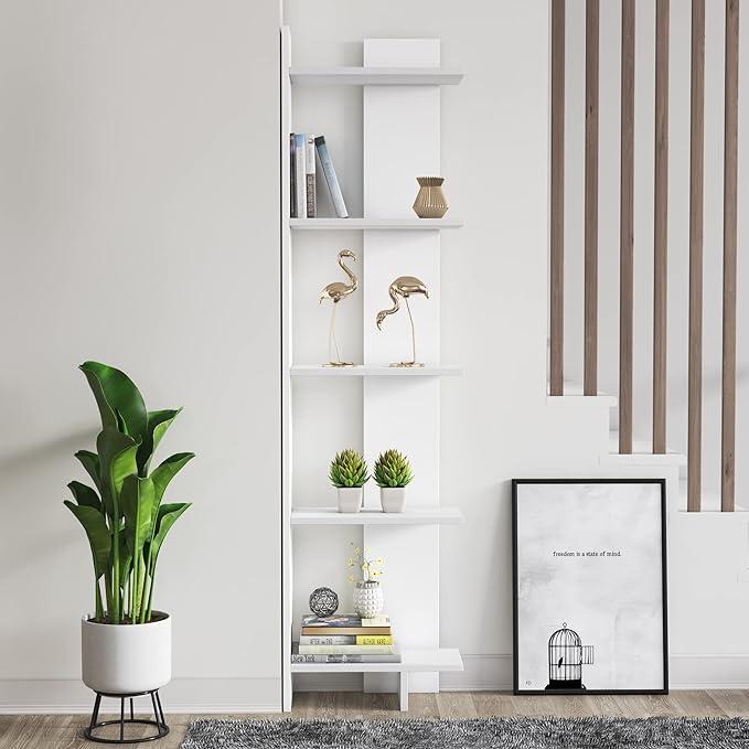 - MODERN DESIGN - A streamlined, architectural update on a modern design, this ladder corner unit bookcase displays your books and decor in minimalist style!