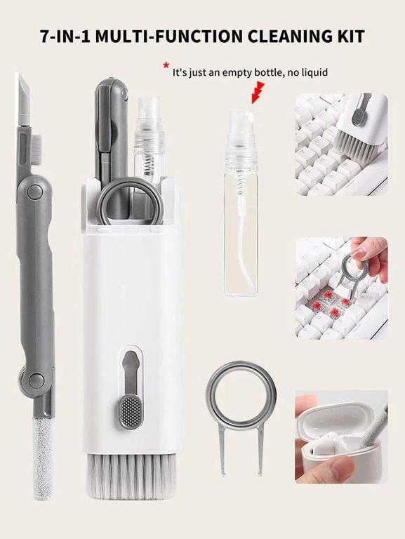 Maintain the cleanliness of your gadgets with this versatile 7-in-1 cleaning kit. It is designed to help you effortlessly clean keyboards, earphones, screens, and various small device components.