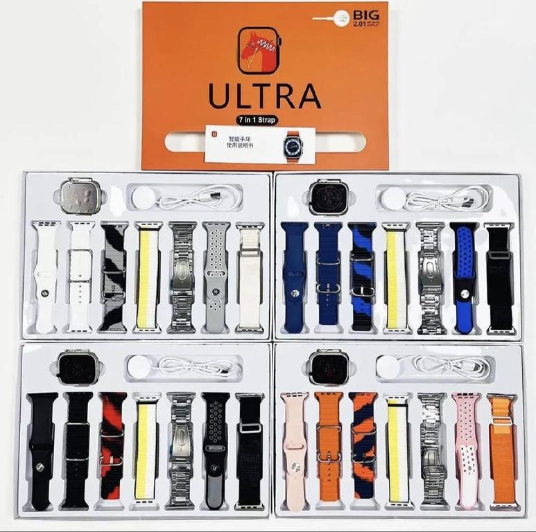 - 7 In 1 Ultra Smart Watch 2.1 Inch Full HD Screen Series 8 Wireless Charging 7 Straps Waterproof