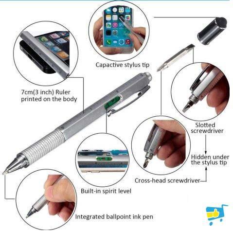 7-in-1 Touch Screen Stylus Ballpoint Pen with Screwdriver, Spirit Level, and Ruler for Engineers