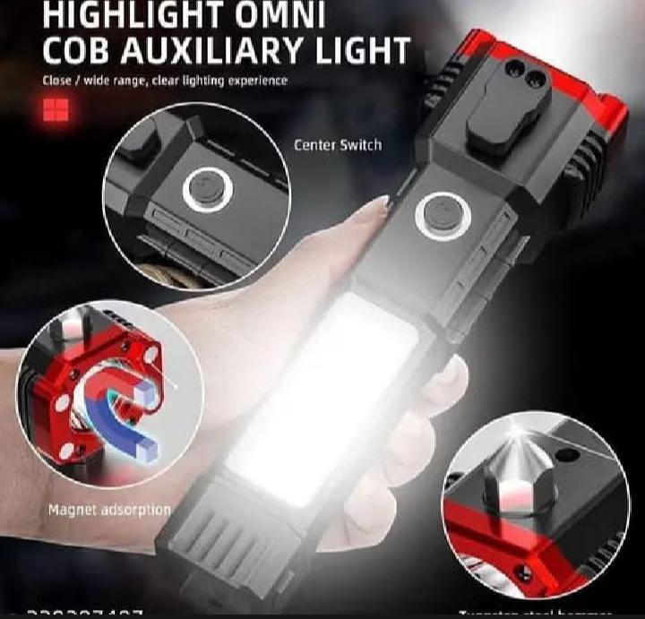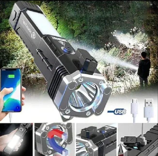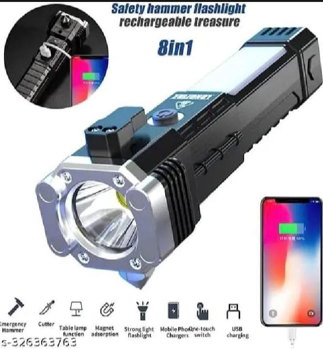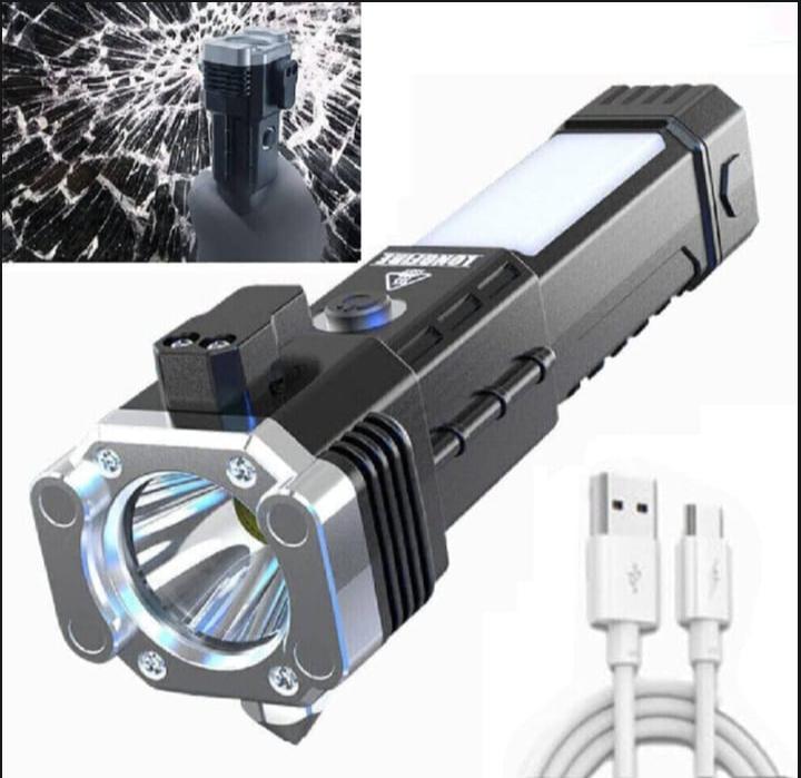 8-in-1 LED Rechargeable Light - Flashlight Torch and Car Emergency Tool with Window Breaker, Seatbelt Cutter, and Bright Light - Portable Multi-Use Household Light