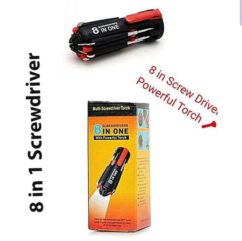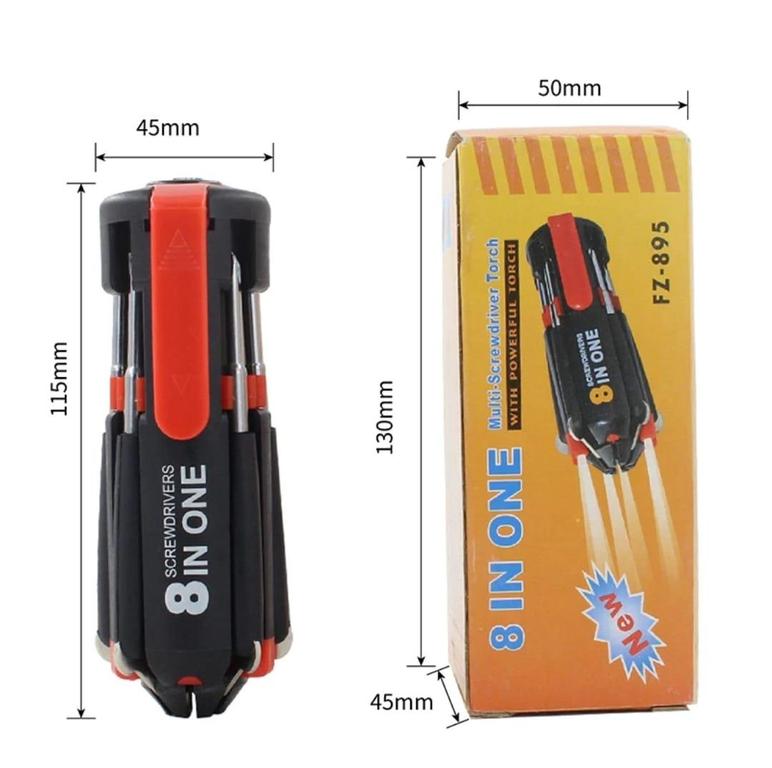 8-in-1 Multi Portable Screwdriver with LED Torch and Lightweight Flashlight Set