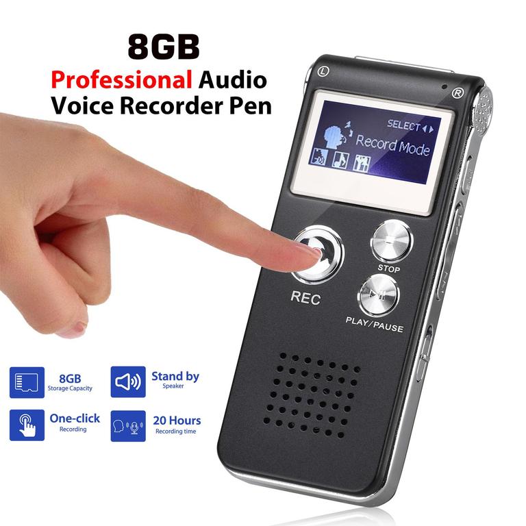 8GB Digital Voice Recorder with Time Display and MP3 Playback