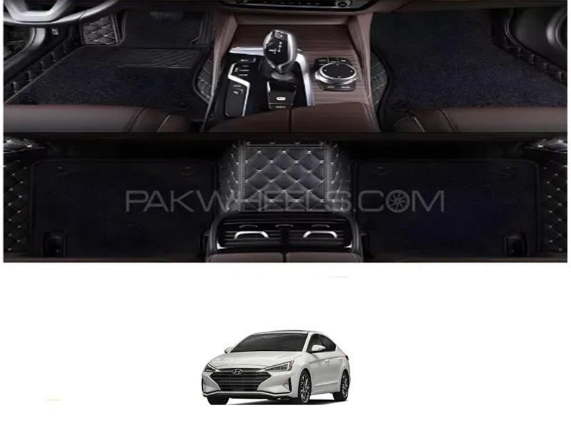9D Floor Mats for Hyundai Elantra 2021-2024 - Set of 3 with Mixed Threads and Black Grass Logo Design