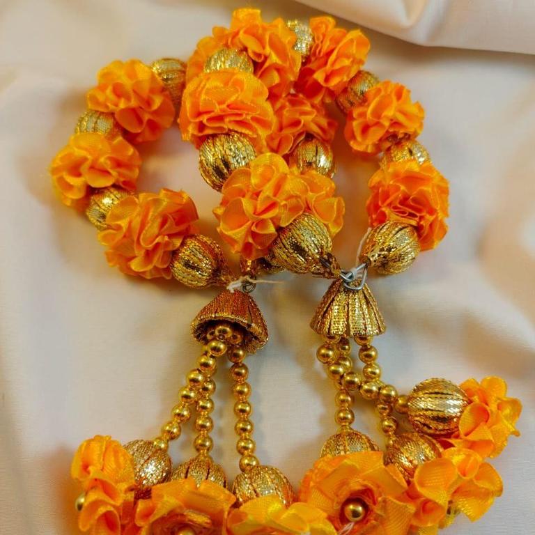 Add tradition and color to your festive appearance with these handcrafted artificial gajra bangles, ideal for Mehendi, Mayun, Dholki, and cultural celebrations. Designed to complement any outfit, these bangles come in vibrant colors and feature adjustable sizing for a comfortable fit on all wrist sizes.