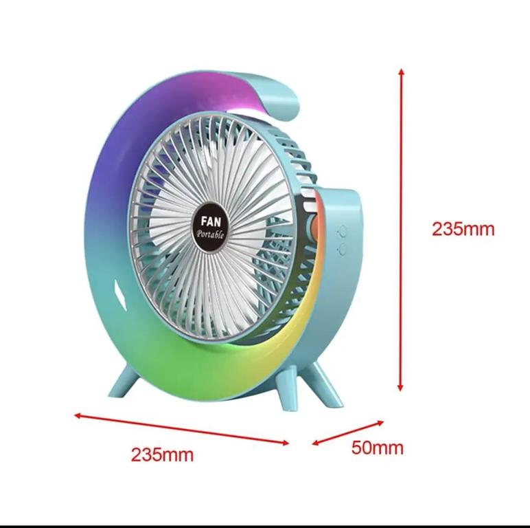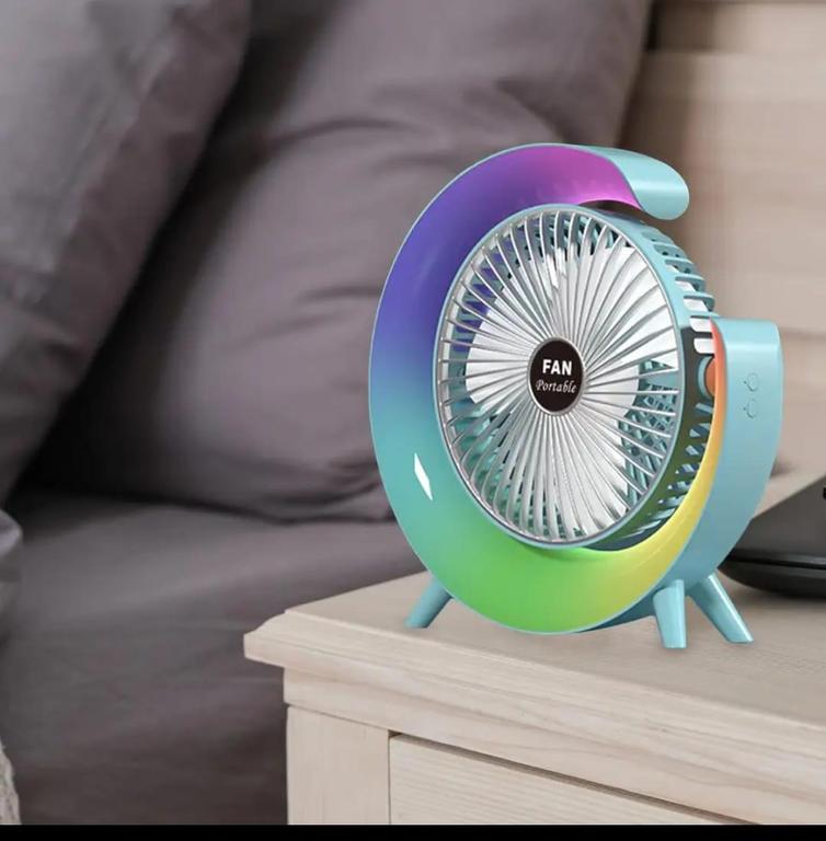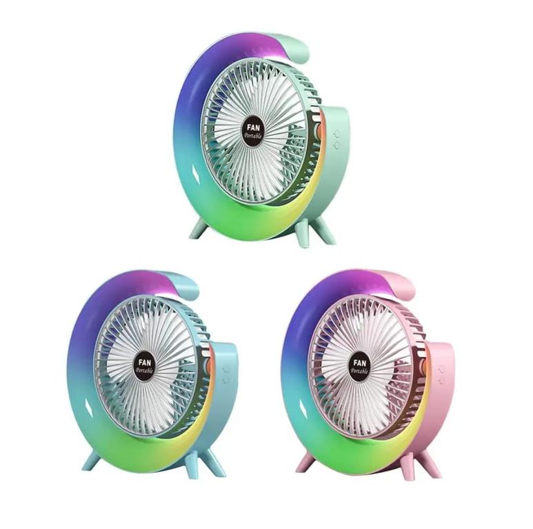 Adjustable Desktop Table Fan with 3 Speeds and 5 Light Modes - Easy to Clean and Portable for Home, Travel, and Outdoor Use
