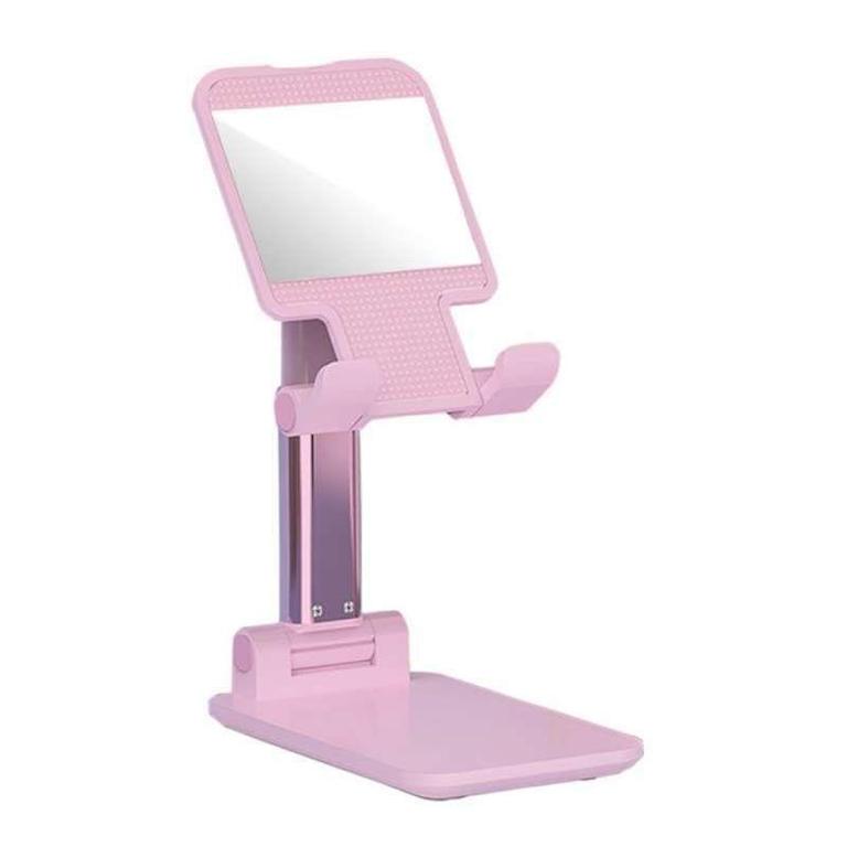 This foldable phone holder is designed for portability. It collapses flat, making it easy to carry and a great space-saver while traveling or at work.