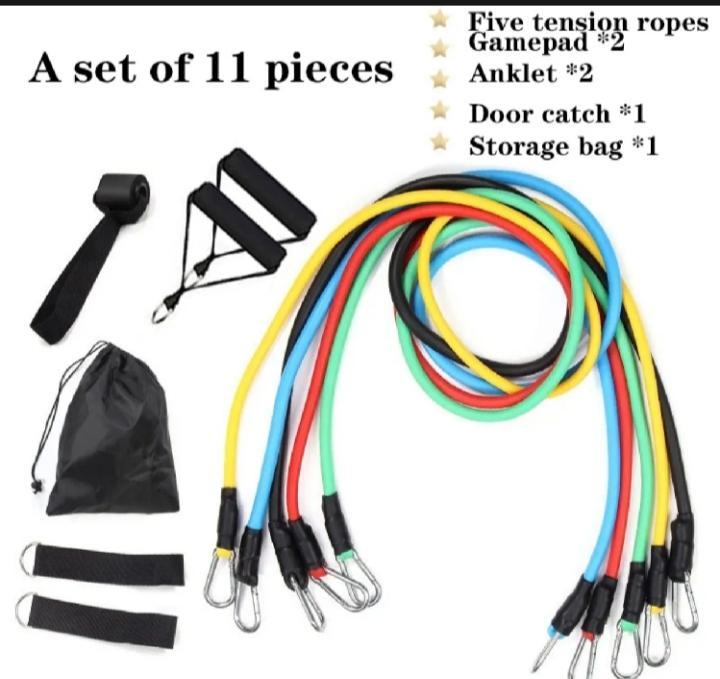 - Brand Generic / Unbranded Material 100% Natural Latex Rubber Color Multicolor (Yellow, Red, Green, Blue, Black) Resistance Levels 10 lbs, 20 lbs, 30 lbs, 40 lbs, 50 lbs (can be combined up to 150 lbs) Type Resistance Bands Set Gender Unisex Target Area Full Body (Arms, Chest, Legs, Shoulders, Glutes) Function Strength Training, Muscle Toning, Body Shaping, Physical Therapy Included Accessories Handles, Door Anchor, Ankle Straps, Carry Bag Usage Home, Gym, Office, Outdoor Durability High Elasticity, Tear-Resistant, Anti-Snap Design Portability Lightweight & Easy to Carry Training Level Suitable for Beginners to Professionals Item Weight Approx. 500–700g (Complete Set)