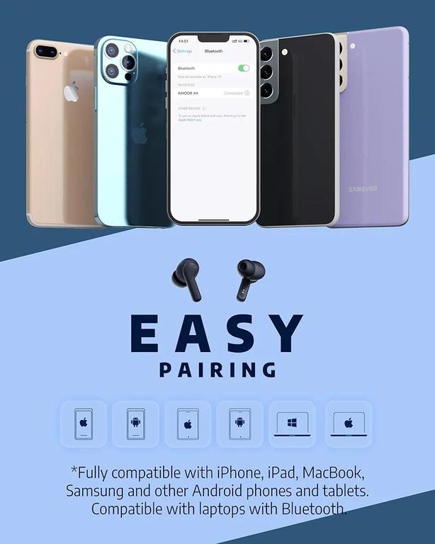 AIHOOR A4ANC Wireless Earbuds – Blue