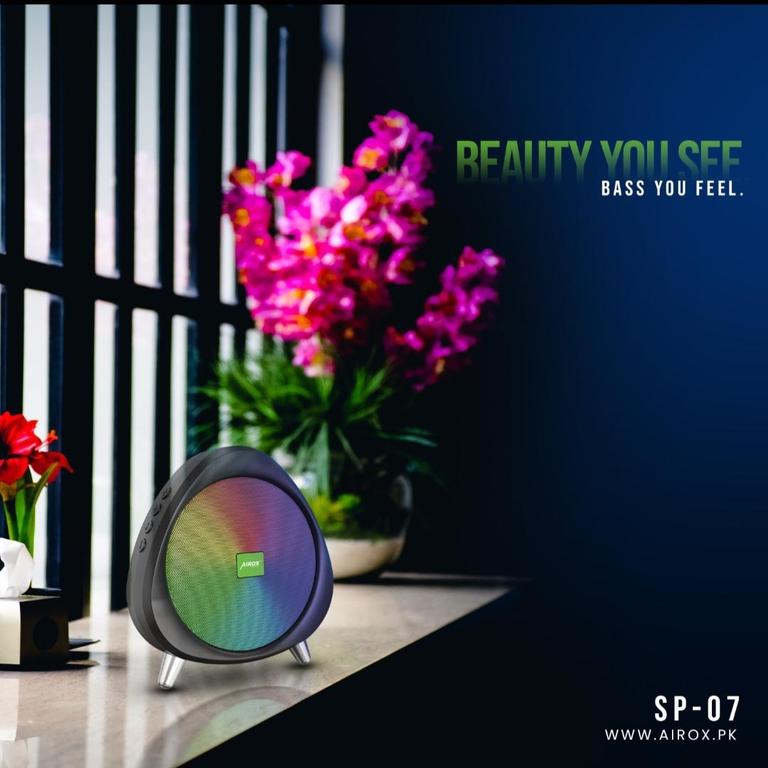 Experience exceptional audio quality with the Airox SP07 Bluetooth Speaker, designed to deliver deep bass and powerful sound.