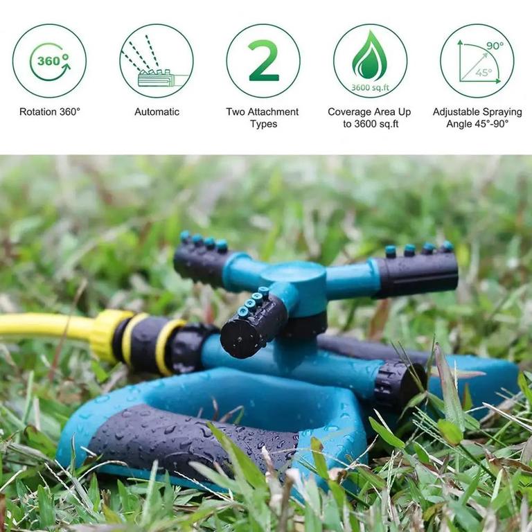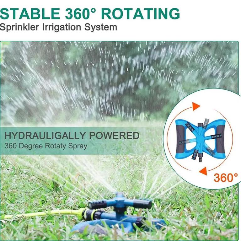 This automatic 360-degree rotating garden sprinkler efficiently waters your plants and flowers evenly. You can easily adjust the angle for targeted irrigation to every part of your garden. Additionally, multiple sprinkler heads can be linked together to cover larger areas.