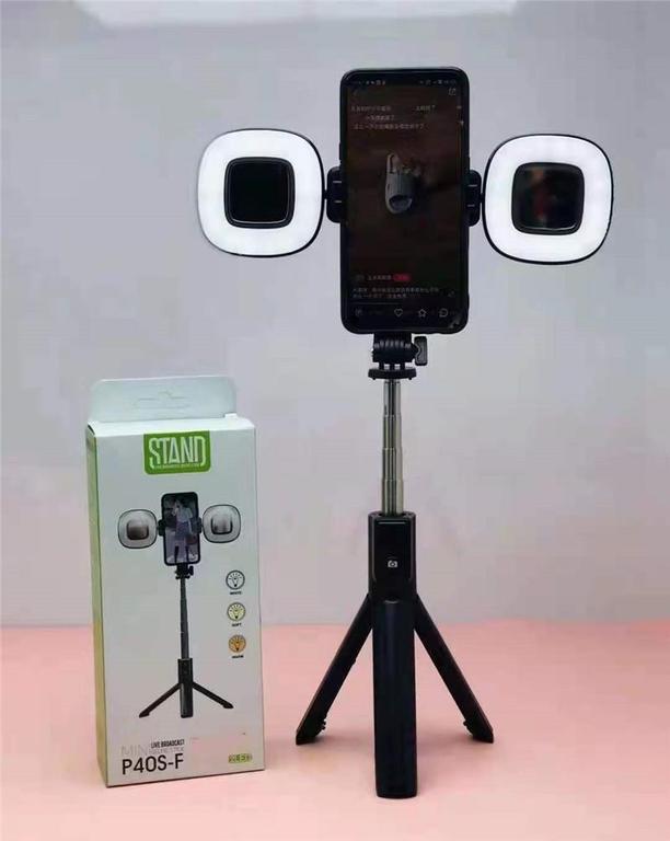 AWCTraders P40s-F Selfie Stick with Detachable Double Fill Light and 360° Rotation for Mobile Phones and Bluetooth Tripod
