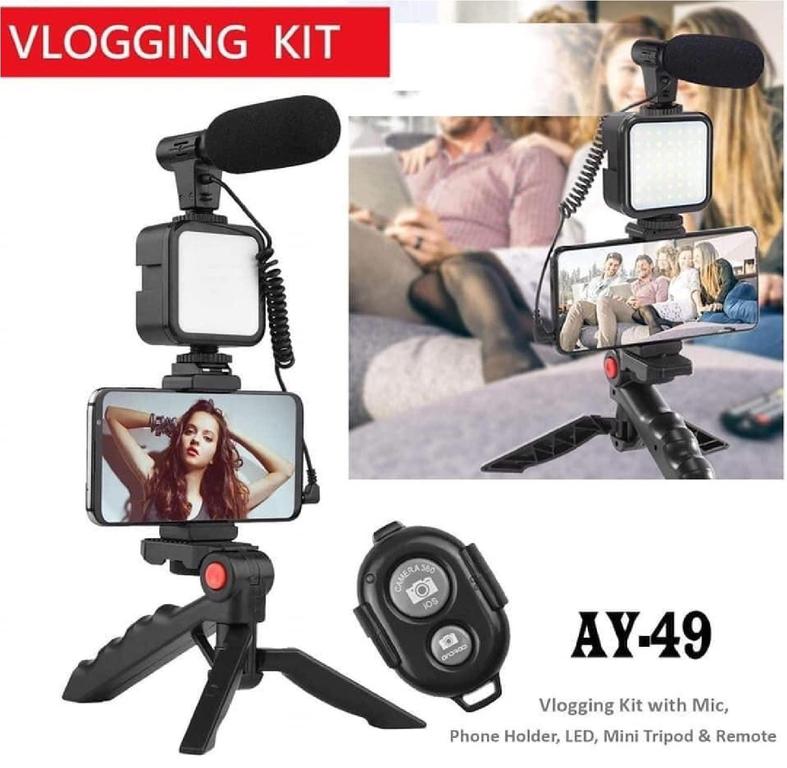 If you're looking to enhance your video-making and vlogging skills, the AY-49 Vlogging Kit is your ideal choice. This all-inclusive kit features a sturdy tripod designed to help you create professional-quality content effortlessly, whether you're just starting or already a pro.