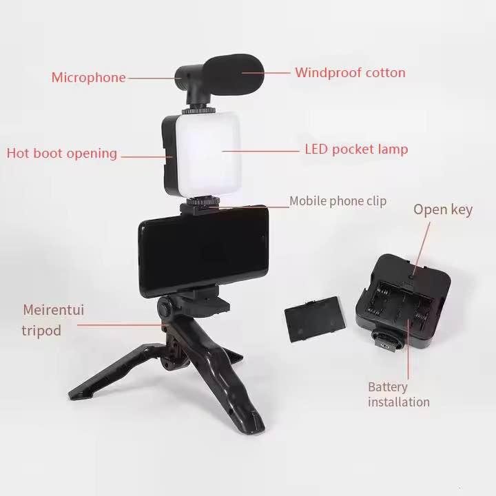 Enhance your video creation with the AY49 Vlogging Kit, a comprehensive 6-in-1 solution perfect for both indoor and outdoor use, including live streaming and filming.