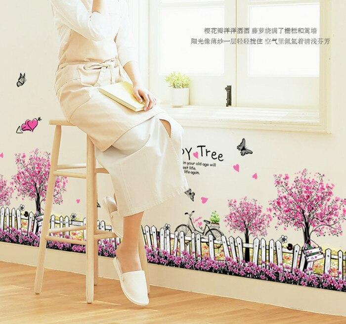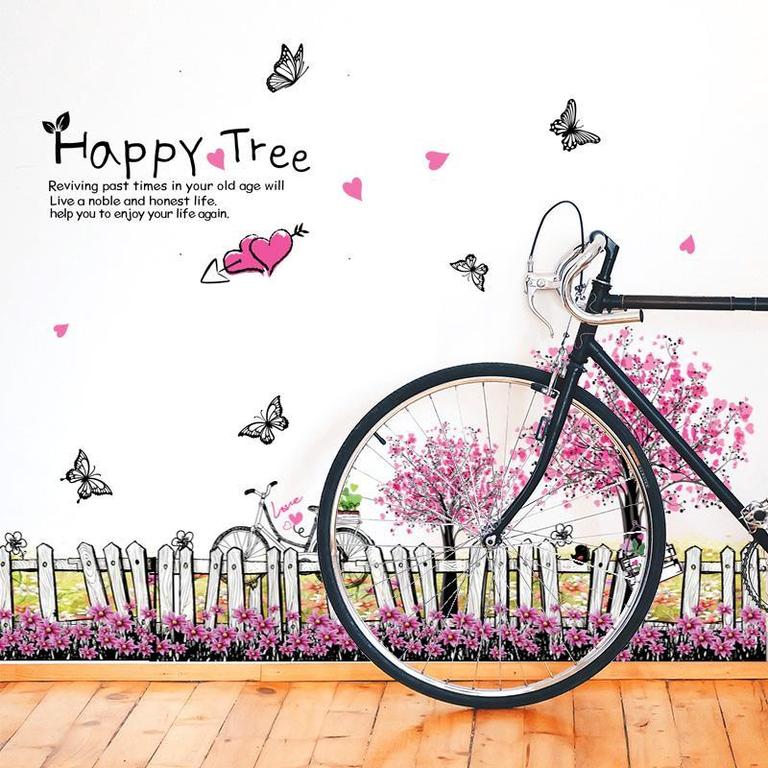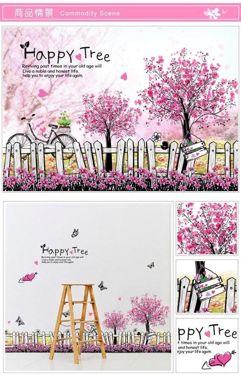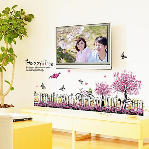 AY7267 Dynamic Well Wall Sticker Featuring Trees and Butterflies