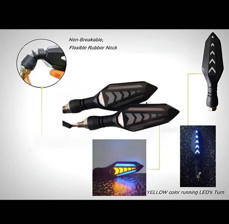 Bike Indicator Slides Arrow Running Style With LAVA DRL Yellow-White/Yellow-Red/Yellow-Blue (2 Piece Set) | Fancy Universal Indicator For Motorcycle | Mini Fancy Indicator for Bike