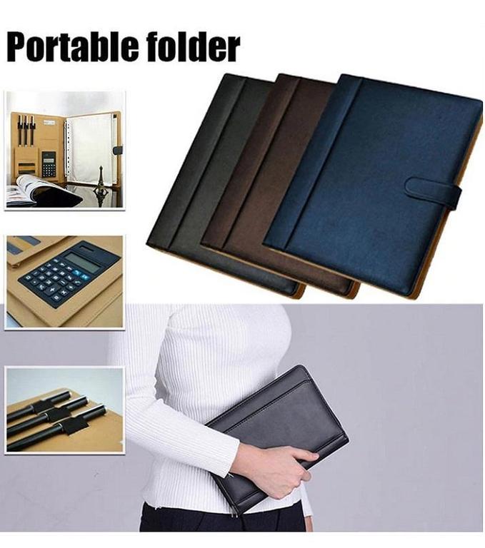Black - 8 Pockets File Folder A4 PU Ring Binder Display Notebook Folders with Calculator Document Bag Organizer Business Office Supplies