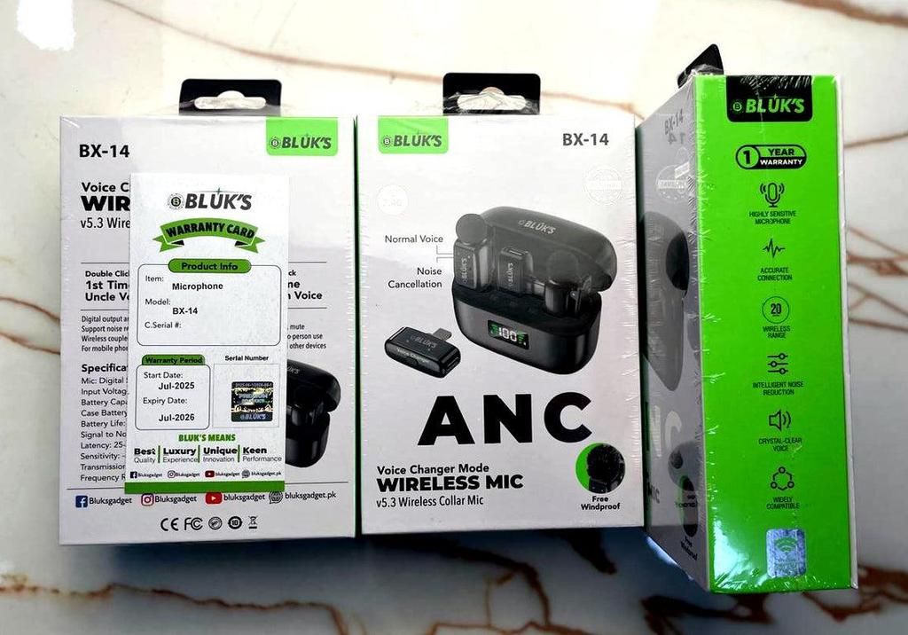 The Bluks BX-14 is a lightweight and innovative wireless collar microphone, specifically designed for vloggers, educators, YouTubers, and online presenters. It comes equipped with Bluetooth 5.3, Active Noise Cancellation (ANC), and a voice changer feature that enhances voice clarity and brings a fun touch to your videos.