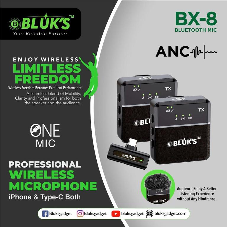 For those dedicated to producing superior content, the Bluks BX-8 is an essential tool. Its premium features—such as noise cancellation, dual microphones, and seamless compatibility with iPhone and Android—make it an invaluable asset for enhancing your audio quality. Whether you're vlogging, streaming, or podcasting, the Bluks BX-8 ensures professional-grade sound capture every time.