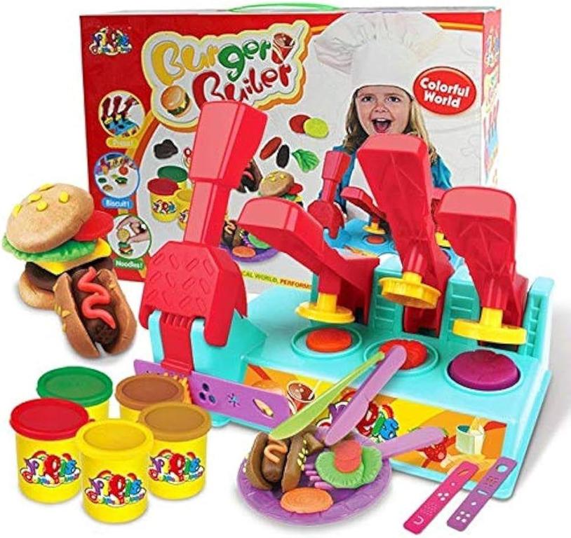 No batteries required. 100% Safe and Non Toxic Clay. A unique DIY Play set for kids. Kids will have unlimited with with this great Clay Set. Let your children indulge in some creative activities. It is one of the unique DIY play set. Grab soon.Make beautiful looking Burger Fast Food with Clay. Just load the clay in vending machine and create your own favorite Burger Fast Food