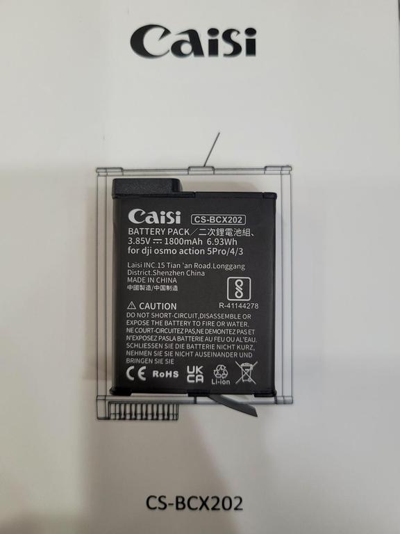 The CAISI battery is designed specifically for the DJI Osmo Action series, compatible with Action 5 Pro, Action 4, and Action 3 models. This battery has a capacity of 1800 mAh, ensuring reliable power for your action camera.