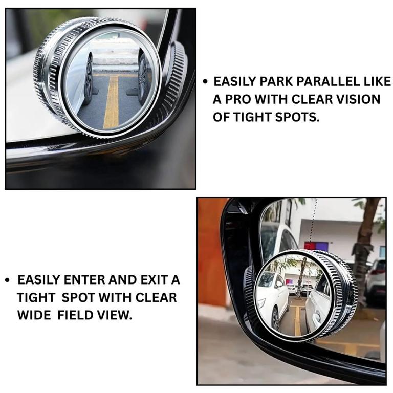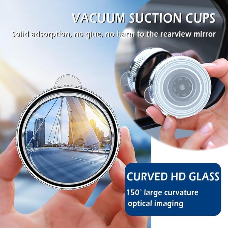 Car Vacuum Adsorption Blind Spot Mirror Suction Cup Design 360° High Quality -SILVER Convex Mirror Design Round -Inner Frameless Movement Mirror.