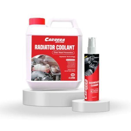 - Carrera Car Dashboard Cleaner - 200mlCarrera Dashboard Cleaner cleans, shines, and cares for car interiors and new household furniture leather, vinyl, rubber, plastic, and wood. Gives a neat and clean look with a premium fragrance.Carrera Long Life Radiator Coolant Red 4Ltr (Heat Preventive)Carrera Radiator coolant with unique formula is effective in stabilizing machine temperature from overheating and increasing the boiling point. Carrera radiator coolant is effective to protect cooling system parts from rust. corrosion and deposit. Create a protective coating on the cooling system part made from metal/aluminum. It has the best protection against rust.