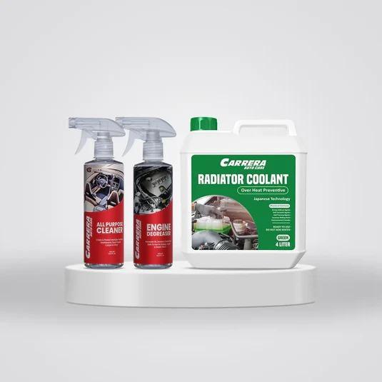 Carrera 4L Coolant Overheat Preventive, 500ml Engine Degreaser, and 500ml All-Purpose Cleaner Set