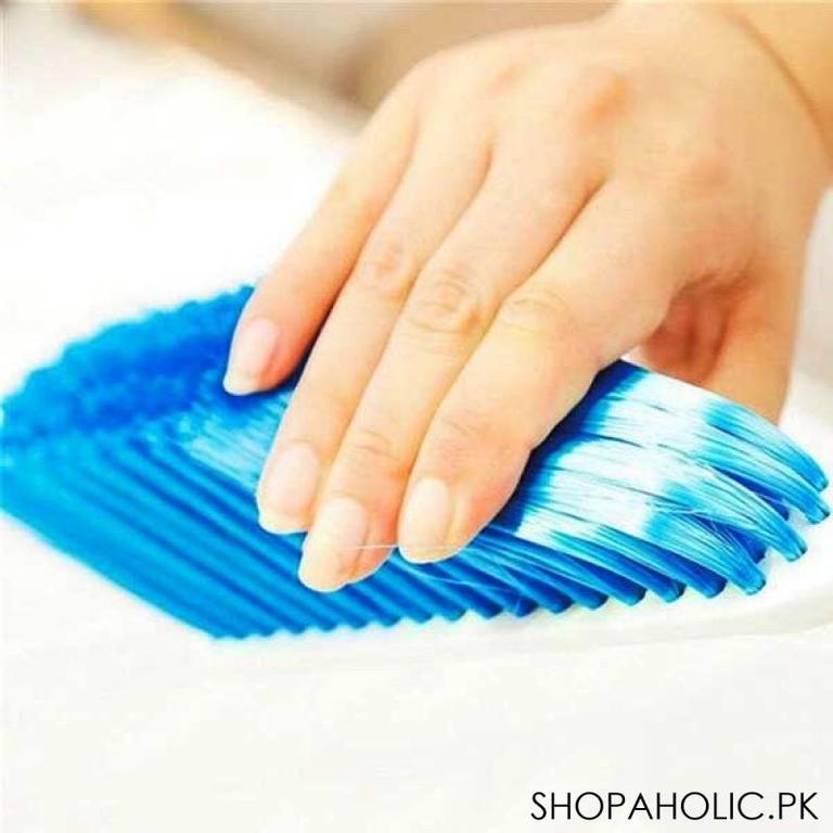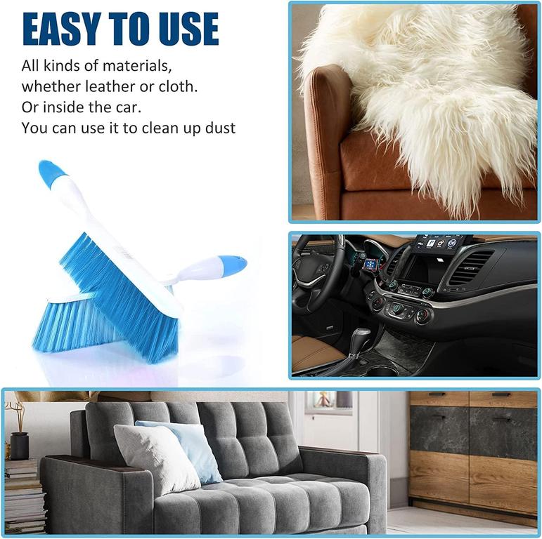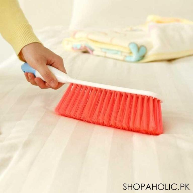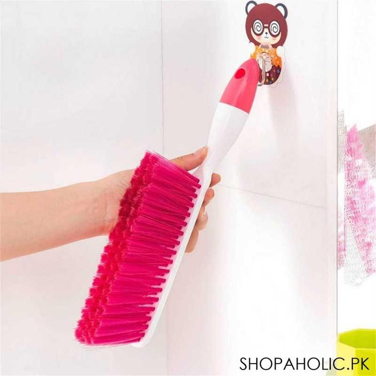This cleaning brush is designed for maintaining your sofa, bed, and carpets. It features a long plastic handle for ease of use, making it suitable for both home and office environments.