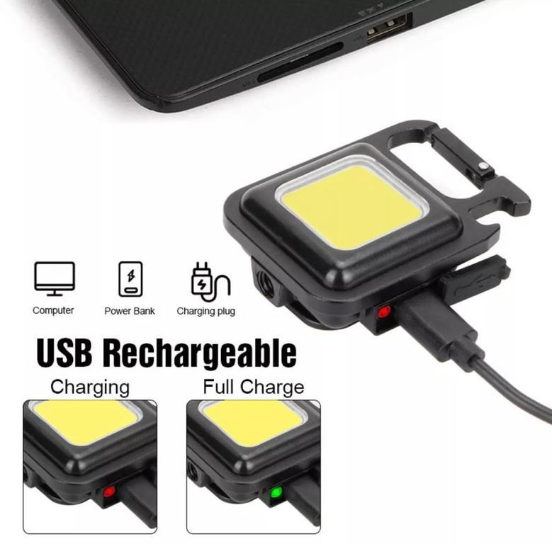 COB Keychain light Mini Small Rechargeable Flashlight 3 Light Modes Portable Pocket Light with Folding Bracket Bottle Opener and Magnet Base for Fishing, Walking and Camping | Skyhibazaar