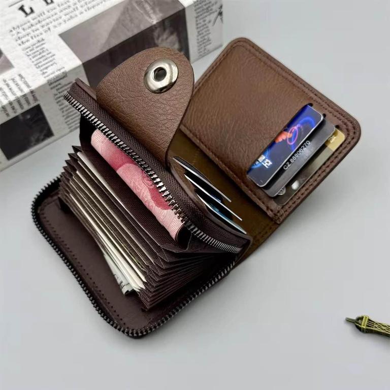 - Secure Closures: Features both snap and zipper closures to keep your cards and cash safe.