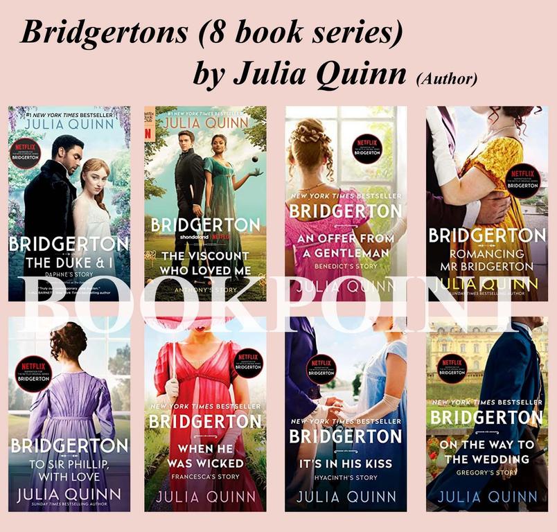 Complete Bridgerton Series (8 Books) by Julia Quinn: The Duke & I, The Viscount Who Loved Me, Romancing Mister Bridgerton, Offer From a Gentleman, To Sir Phillip With Love, When He Was Wicked, It's In His Kiss, On the Way to Wedding