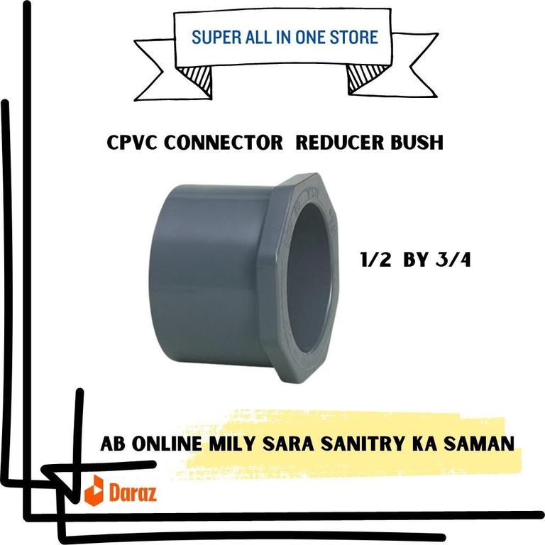 The CPVC Connection Bush comes in two sizes: 1/2" x 3/4" and 3/4" x 1". It is designed for various plumbing applications and is constructed from high-quality CPVC material.