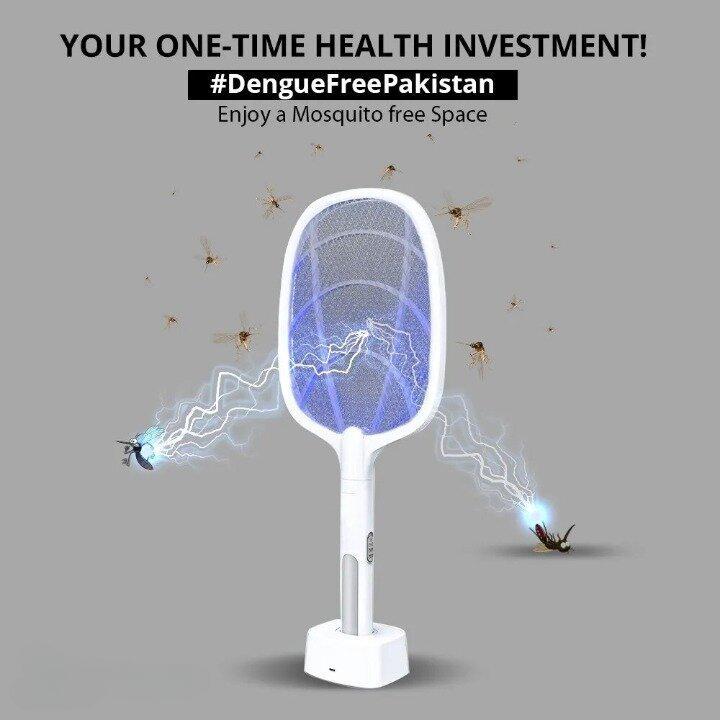 Eliminate annoying mosquitoes with the DAN TECHNOLOGY Rechargeable Mosquito Racket, featuring a dual function: a robust electric bug zapper and a practical UV night lamp for continuous protection.
